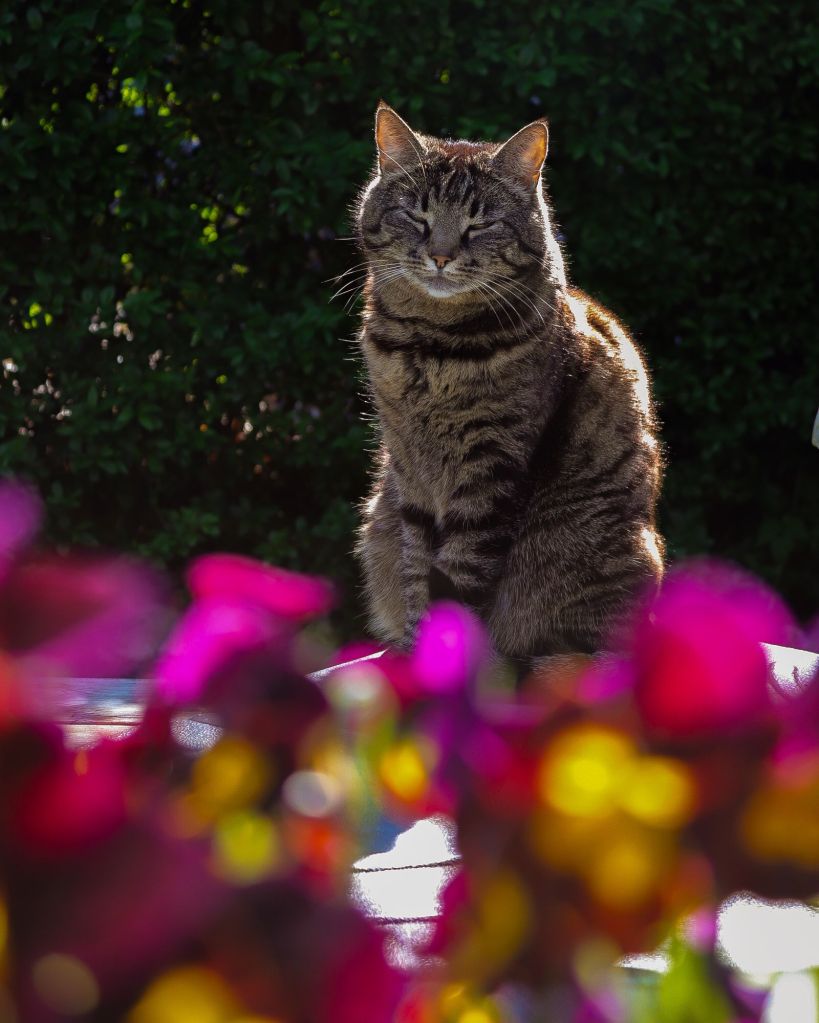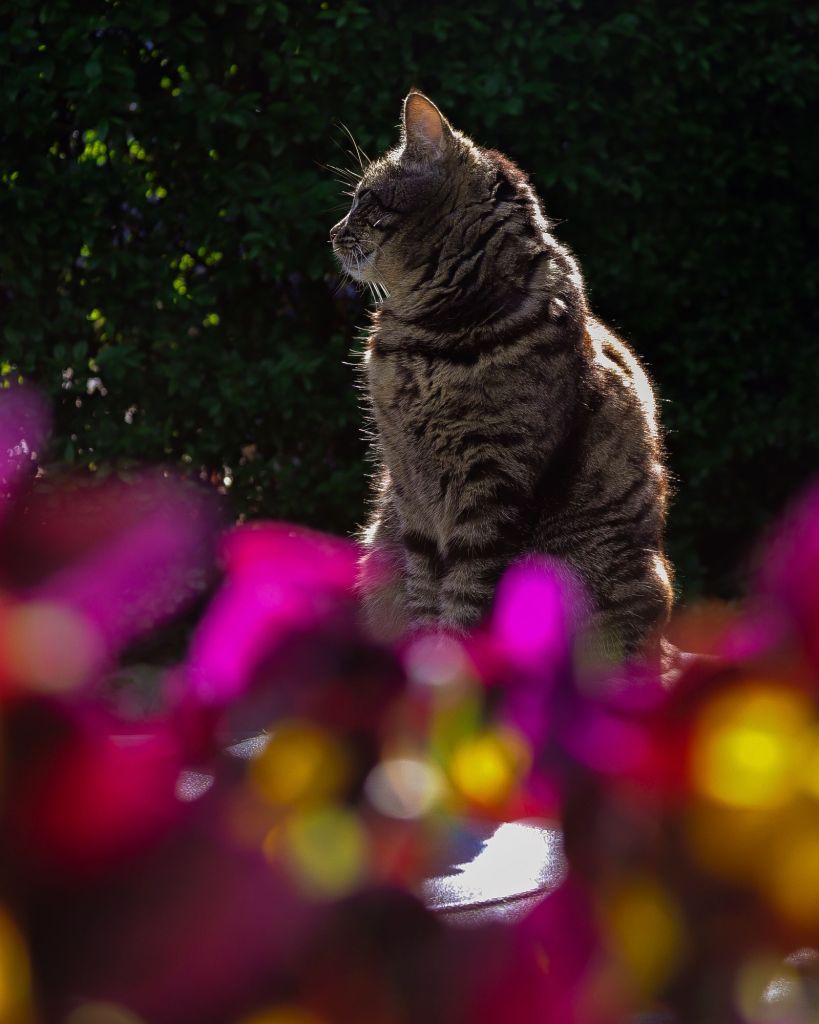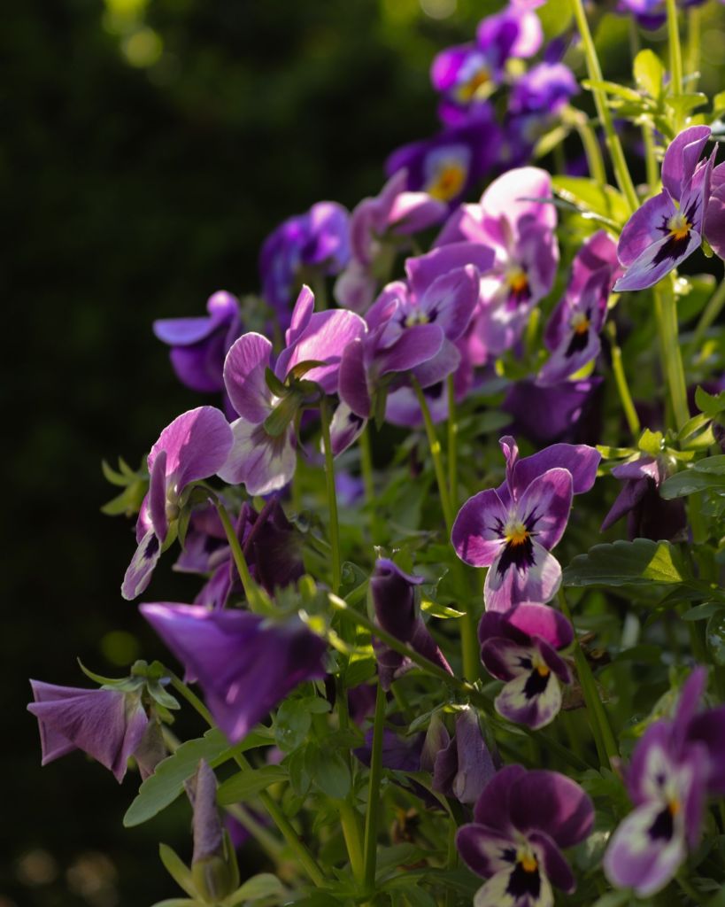 Jag gick ut för att läsa en bok och vattna blommorna, men fastnade bland penséerna. Färger som dansade i solljuset. Och förstås dök Cajsa upp, som vanligt, precis i rätt ögonblick när det var som mest fotovänligt. Så det fick bli ett litet fotoreportage från vår uteplats denna junidag.